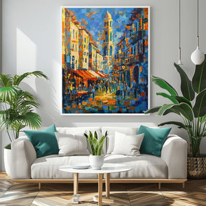 This painting captures the Mediterranean spirit of Alicante – bright facades, dynamic forms, and a vibrant atmosphere that brings energy and warmth into any space. Ideal for art lovers, travel enthusiasts, or anyone who wants to decorate their home with a unique artistic touch.