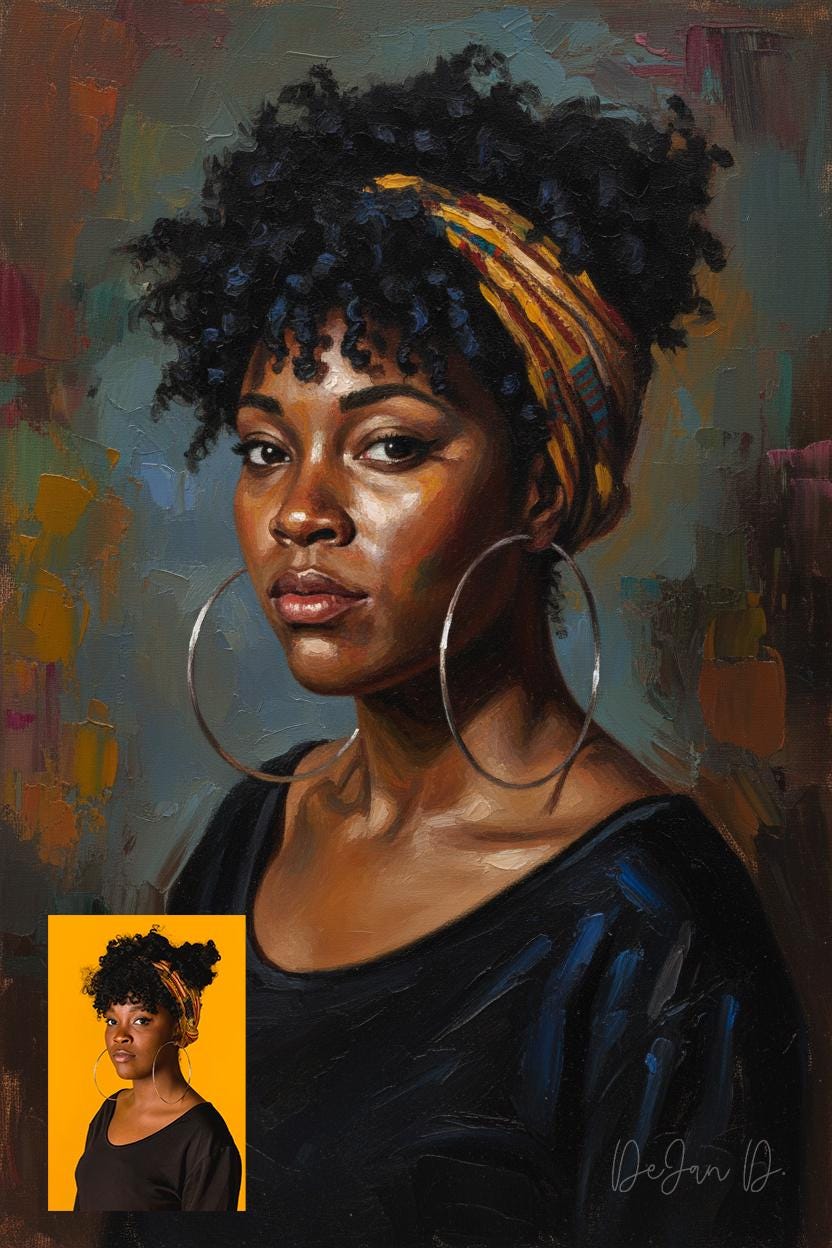 Delivery: Your finished portrait will be a high-resolution digital download, ready for you to print on paper, canvas, or any material you want. Turn your custom art into a birthday gift idea, retirement gift art, or a thoughtful gift for her.
