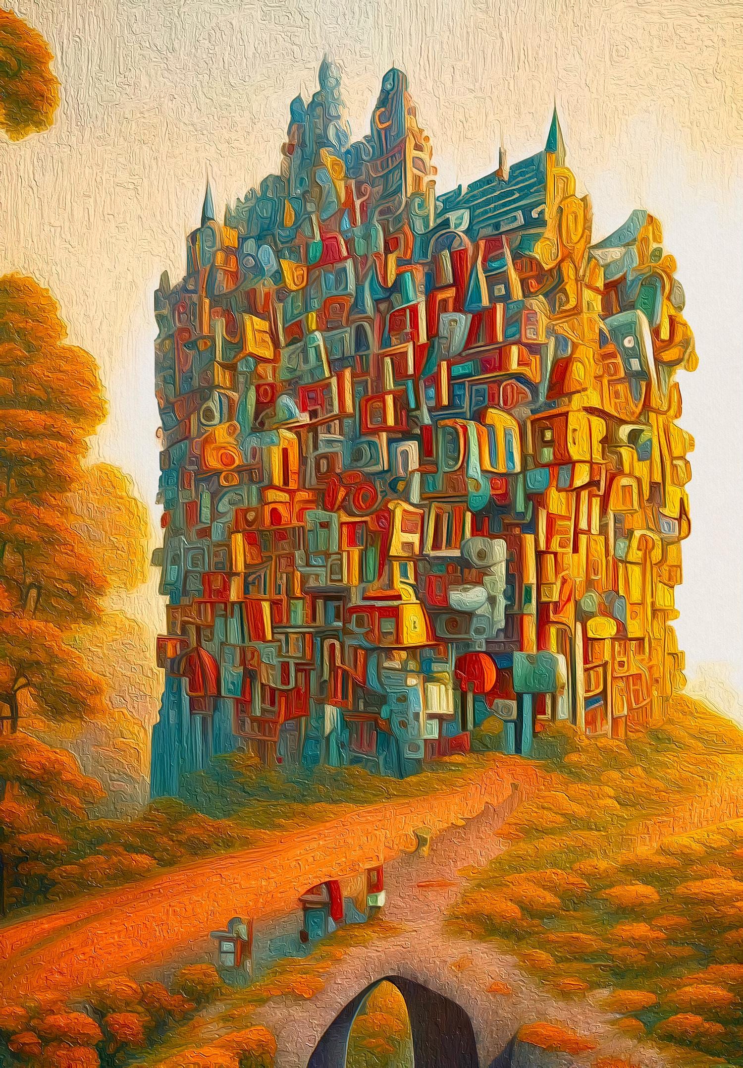 Surreal Fantasy Castle Print: Steampunk Nature Art (Digital Download
