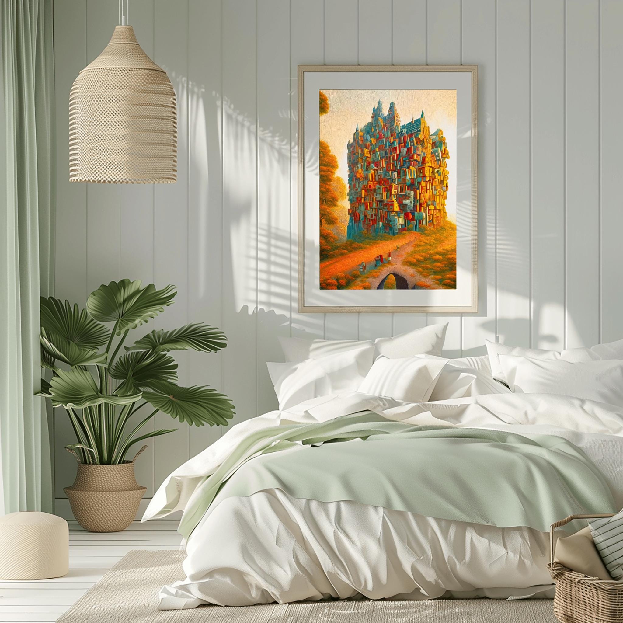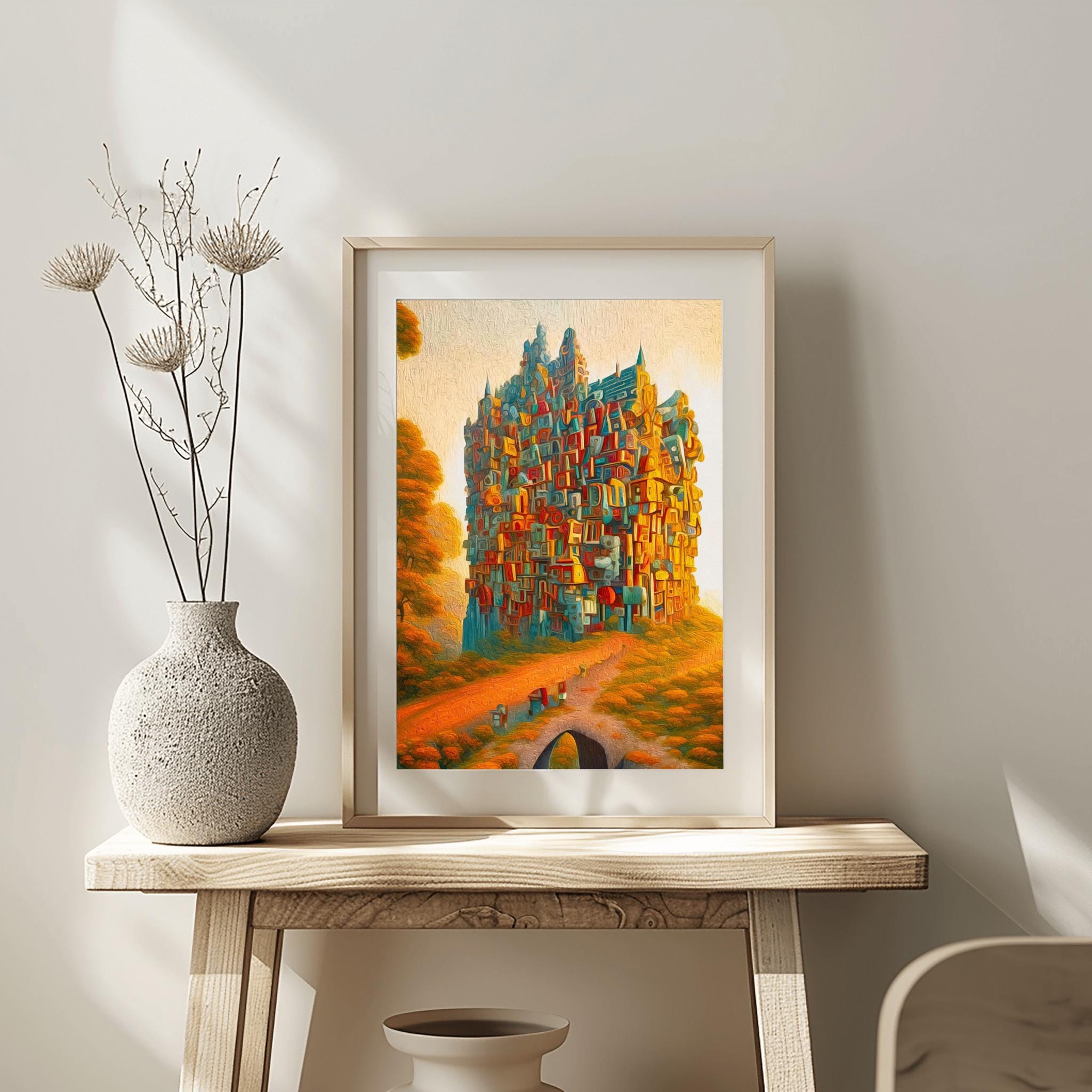 Bring the Secret Castle artwork into your space with this surreal wall art digital poster. Designed as a printable wall art piece for instant download art, it adds a dreamlike wall art quality and a tranquil, modern touch to your room. The composition blends fantasy wall print elements, nature wall decor vibes, and whimsical art print details to easily complement your home. Calm, neutral tones pair seamlessly with modern wall decor and abstract poster aesthetics, making this unique wall print a versatile choice for a quick room refresh.